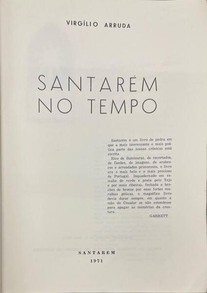Clique nas imagens para aumentar. ARRUDA. (Virgílio) SANTARÉM NO TEMPO.Edição da Comissão Municipal de Turismo de Santarém. Santarém. 1971. De 25x18 cm. Com 603, [xii] págs. Brochado. Ilustrado no texto com fotografias a preto e branco. Exemplar com capas, lombada e folhas manuseadas e anotações a tinta esferográfica na folha seguinte a folha de rosto.