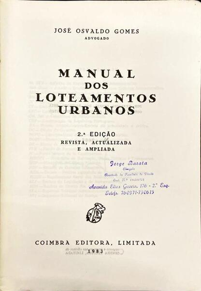 GOMES. (José Osvaldo) MANUAL DOS LOTEAMENTOS URBANOS. [2.ª EDIÇÃO]