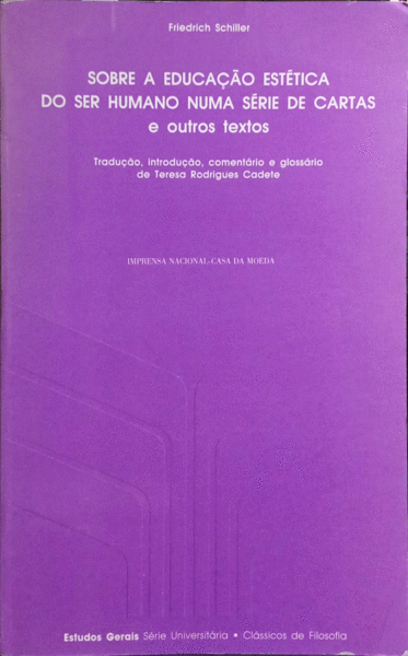 SCHILLER. (Friedrich) A EDUCAÇÃO ESTÉTICA DO SER HUMANO NUMA SÉRIE DE CARTAS E OUTROS TEXTOS.
