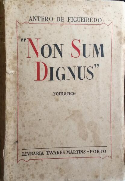 Clique nas imagens para aumentar. FIGUEIREDO. (Antero de) NON SUM DIGNUS.[Por]... Da Academia das Ciências de Lisboa e da Academia Brasileira de Letras. 3.ª Edição. Romance. Livraria Tavares Martins. Porto. 1948. De 19x12,5 cm. Com 375, [vi] págs. Brochado. Exemplar Parcialmente por abrir, com manchas de humidade e assinatura de posse data na folha de guarda anterior. Referência: 2507DG295