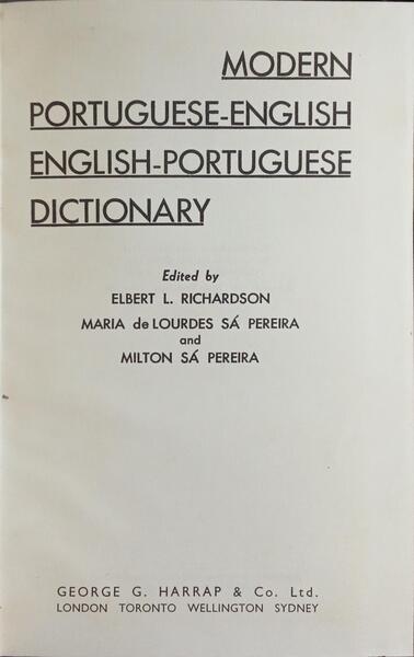 RICHARDSON. (Elbert L.), Maria de Lourdes Sá Pereira e Milton Sá Pereira. MODERN PORTUGUESE-ENGLISH. ENGLISH-PORTUGUESE DICTIONARY.
