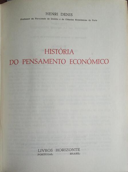 Clique nas imagens para aumentar. DENIS. (Henri) HISTÓRIA DO PENSAMENTO ECONÓMICO.[Por]... Professor da Faculdade de Direito e de Ciências Económicas de Paris. Colecção Economia. Livros Horizonte. Lisboa. S.d. De 23,5x17,5 cm. Com 782, [ii] págs. Encadernação inteira de pele com nervos e ferros a ouro na lombada e pasta anterior. Exemplar com assinatura de posse datada de 1967. Tradução de António Borges Coelho, do título original «Histoire de la Pensée Économique». Referência: 2508RS571