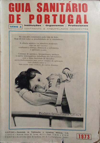 Clique nas imagens para aumentar. GUIA SANITÁRIO DE PORTUGAL, 3.º ANO 1973.Série A: Instituições - Organismos - Profissionais, Continente e Arquipélagos Adjacentes. Periódico de assuntos relacionados com os médicos e a Saúde Pública (a publicar, pelo menos, uma vez em cada ano). Edições SOPIME - Sociedade de Publicações e Iniciativas Médicas. Porto. 1973. De 24x17 cm. Com 516 págs. Brochado, inclui marcador de páginas. Ilustrado com alguns diagramas. Contém em extratexto anúncios publicitários, sobre papel cartolina. Exemplar com ligeiros danos e capas manuseadas. Impresso em duas colunas. Referência: 2508RS641