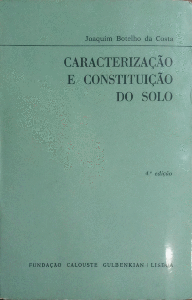 Clique nas imagens para aumentar. BOTELHO DA COSTA. (Joaquim Vieira) CARACTERIZAÇÃO E CONSTITUIÇÃO DO SOLO. [4.ª EDIÇÃO]Com revisão e aditamentos de Ário L. Azevedo e R. Pinto Ricardo. 4.ª Edição. Fundação Calouste Gulbenkian. Lisboa. 1991. De 19x12,5 cm. Com 527, [i] págs. Brochado. Ilustrado com gravuras, fotografias, tabelas, gráficos e esquemas exemplificativos. Exemplar com assinatura de posse na folha de guarda, sublinhados e notas a lápis e a tinta. A obra contém ao final um segmento com a "Literatura Citada", um "Índice Geral" e um "Índice de Autores". Referência: 2508RS685