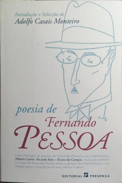 Clique nas imagens para aumentar. PESSOA. (Fernando) e Adolfo Casais Monteiro. POESIA DE FERNADO PESSOA.Introdução e selecção de... 3.ª Edição. Editorial Presença. Barcarena. 2006. De 21x14 cm. Com 222 págs. Brochado. Ilustrado em extratexto com fotograias do autor a preto e branco sobre papel couché. Exempalr com etiqueta e assinatura de posse na folha de guarda anterior. Referência: 2509DG362