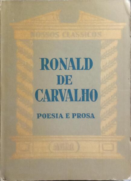Clique nas imagens para aumentar. FAGUNDES JÚNIOR. (João Peregrino da Rocha) RONALD DE CARVALHO: POESIA E PROSA.Por Peregrino Júnior. Nossos Clássicos, 45: Publicado sob a direção de Alceu Amoroso Lima e Roberto Alvim Corrêa. Livraria Agir Editora. Rio de Janeiro. 1960. De 16x11,5 cm. Com 118, [i] págs. Brochado. Ilustrado com um retrato de Ronald de Carvalho face à folha de rosto. Referência: 2509MA424