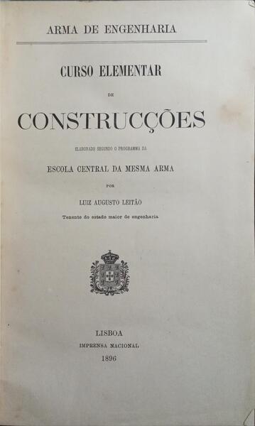 Arma de Engenharia. Elaborado segundo o programma da Escola Central da Mesma Arma por Luiz Augusto Leitão, Tenente do Estado Maior de Engenharia. Imprensa nacional. Lisboa. 1896.