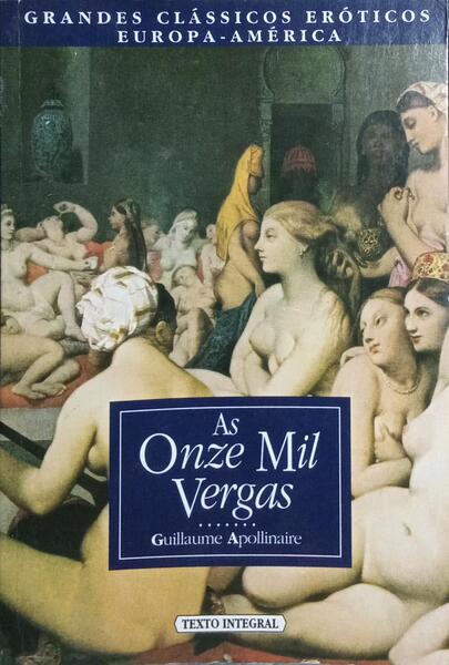Clique nas imagens para aumentar. APOLLINAIRE. (Guillaume) AS ONZE MIL VERGAS. [2.ª EDIÇÃO]2.ª Edição. Texto Integral. Grandes Clássicos Eróticos Europa-América, N.º 2. Publicações Europa-América. Mem Martins. 1999. De 21x14,5 cm. Com 117, [ii] págs. Brochado. Exemplar com vestígios de talão comercial do editor na folha de guarda e tem junto um cartão postal editorial. Referência: 2509RS564