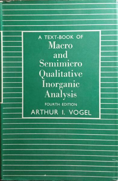 VOGEL. (Arthur I.) A TEXT-BOOK OF MACRO AND SEMIMICRO QUALITATIVE INORGANIC ANALYSIS. [4.ª EDIÇÃO]