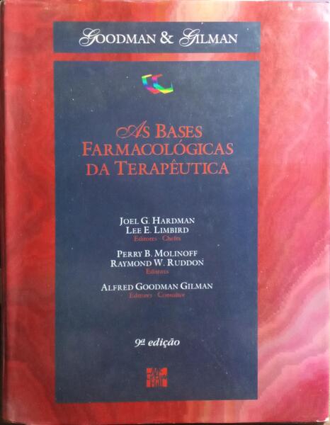 Clique nas imagens para aumentar. HARDMAN. (Joel G.) e Lee E. Limbird. AS BASES FARMACOLÓGICAS DA TERAPÊUTICA.Editores-Chefes..., Ph.D. Editores Perry B. Molinoff, M.D., Raymond W. Ruddon, M.D., Ph.D. Editor-Consultor Alfred Goodman Gilman, M.D., Ph,D., D.Sc. (Hon.) Ilustrações de Edna Kunkel. 9.ª Edição. Goodman &; Gilman. McGraw-Hill. Rio de Janeiro. 1996. De 28,5x22 cm. Com xxi, [iii], 1436 págs. Encadernações do editor com sobrecapa de proteção. Ilustrados a preto e branco. Apresentam texto disposto em duas colunas. Referência: 2510MA012