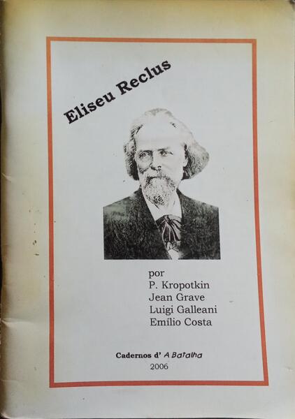 Clique nas imagens para aumentar. KROPOTKIN. (P.) e outros. ELISEU RECLUS.Por..., Jean Grave, Luigi Galleani, Emílio Costa. Cadernos d"Batalha. Lisboa. 2006. De 21x14,5 cm. Com [ii], 59, [i] págs. Brochado. Ilustrado no texto com fotografias a preto e branco. Exemplar com sublinhados a tinta. Referência: 2510MA331