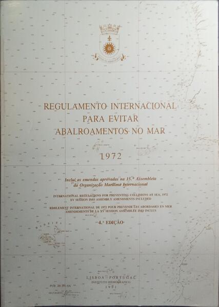 Inclui as emendas aprovadas na 15.ª Assembleia da Organização Marítima Internacional. International Regulations for Preventing Collisions at Sea, 1972 XV Session IMO Assembly Amendments Included. Règlement International de 1972 pour Prévenir les Abordages en Mer Amendements de la XV Session Assemblé IMO Inclus. 4.ª Edição. Instituto Hidrográfico. Lisboa. 1991.