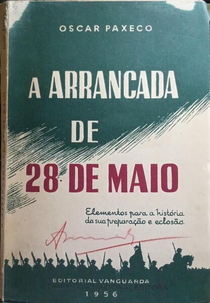 Clique nas imagens para aumentar. PACHECO. (Óscar) A ARRANCADA DE 28 DE MAIO.Elementos para a história da sua preparação e eclosão. Por Oscar Paxeco. Editorial vanguarda: Companhia Nacional Editora. Lisboa. 1956. De 22x15 cm. Com 132, [ii] págs. Brochado. Ilustrado em extratexto sobre papel couché. Exemplar com capas manusedas e assinaturas de posse na capa anterior e na folha de rosto.