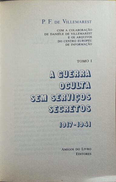 Clique nas imagens para aumentar. VILLEMAREST. (Pierre Faillant de) e Danièle de Villemarest. CIA: ÊXITOS E DESAIRES DA ESPIONAGEM AMERICANA. [4 VOLS.][Por] P. F. de Villemarest com a colaboração de... e os arquivos do Centro Europeu de Informação. Tomo I - A Guerra Oculta sem Serviços Secretos 1917-1941 [Tomo II - Do Col ao OSS 1941-1945; Tomo III - A Capa e a Espada da CIA; Tomo IV - A CIA na Era Atómica]. Amigos do Livro Editores. Lisboa. S.d. 4 Volumes de 20x13 cm. Com 291, [vi]; 283, [iv]; 280, [v]; 280, [v] págs. Encadernações em percalina com marcador de páginas em fita de cetim. Ilustrados em extratexto sobre papel couché com fotografias a preto e branco. P. F. de Villemarest: Châlon-sur-Saône, França, 1922 - Châlon-sur-Saône, França, 2008. Pierre de Villemarest ou Pierre Jean Augustin Faillant foi um antigo membro da resistência, membro dos serviços de contra-espionagem franceses, que se tornou jornalista e escritor, comprometido com a extrema-direita Referência: 2510MA571
