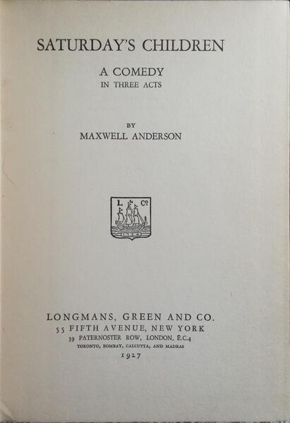 ANDERSON. (Maxwell) SATURDAY'S CHILDREN.