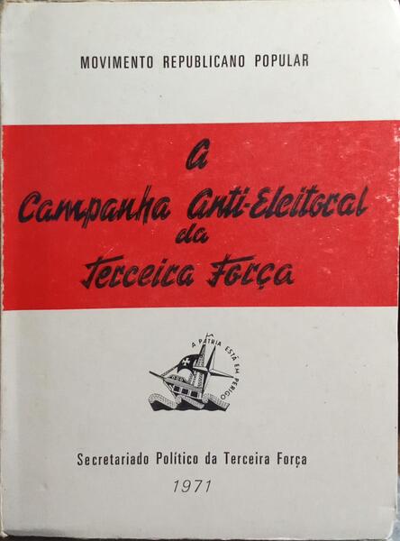 Clique nas imagens para aumentar. CAMPANHA (A) ANTI-ELEITORAL DA TERCEIRA FORÇA.Nas eleições de 1969. Movimento Republicano Popular. Secretariado Político da Terceira Força. Porto. 1971. De 18x13 cm. Com 104 págs. Brochado. Exemplar com lombada manuseada. Referência: 2510PA049