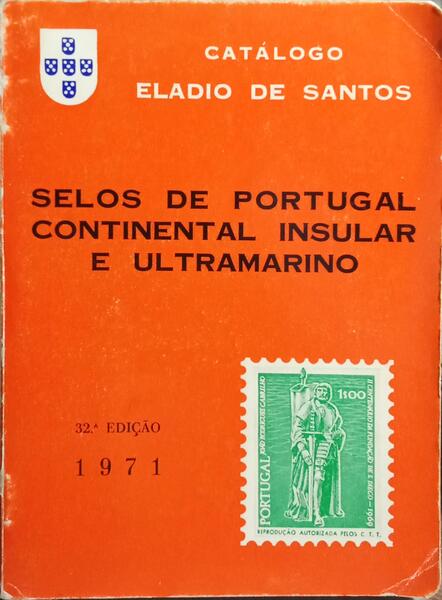 Clique nas imagens para aumentar. SANTOS. (Eládio de) CATÁLOGO DE SELOS DE PORTUGAL CONTINENTAL, INSULAR E ULTRAMARINO. [32.ª EDIÇÃO]Trigésima segunda edição. Edição do Autor. Lisboa. 1971. De 17,5x13,5 cm. Com 270, [v] págs. Brochado. Ilustrado no texto com reproduções de exemplares filatélicos a preto e branco. Exemplar com marcas de manuseamento nas capas, picos de humidade e carimbo oleográfico da Antiga Casa Filatélica na folha de guarda anterior. Referência: 2510PA094
