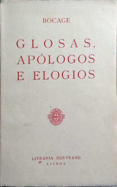 Clique nas imagens para aumentar. BARBOSA DO BOCAGE. (Manuel Maria de) GLOSAS, APÓLOGOS E ELOGIOS.Advinhações, epigramas madrigais e epitáfios. Livraria Bertand. Lisboa. S.d. De 19x12 cm. Com 191 págs. Brochado. Exemplar com etiqueta da editora no verso da capa anterior e algumas folhas por abrir. Referência: 2510PA168