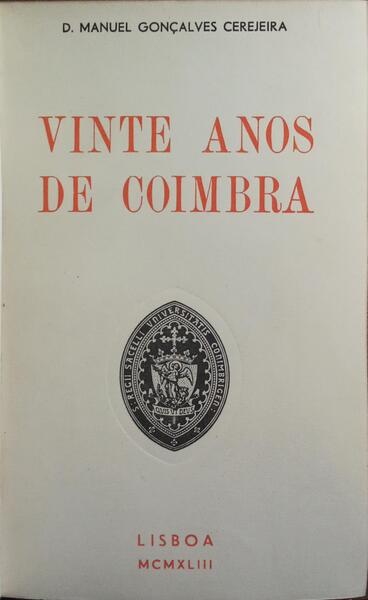 | Clique nas imagens para aumentar. GONÇALVES CEREJEIRA. (D. Manuel) VINTE ANOS DE COIMBRA.Edições Gama. Lisboa. MCMXLIII [1943]. De 19x13,5 cm. Com xxxix, [i], 234, [ii] págs. Encadernação inteira de pele, com nervos, rótulo e ferros a ouro na lombada e nas pastas. Corte das folhas carminado à cabeça, fita marcadora em tira de cetim e preserva as capas de brochura. Ilustrado em extratexto com um retrato a corpo inteiro do autor vestido com as insígnias doutorais da Universidade de Coimbra, impresso sobre papel couché. Exemplar com falhas de pele, etiqueta de encadernador no verso da folha de guarda e assinatura de posse na folha de rosto. Obra com uma antologia dos textos que o autor considerou mais relevantes ao longo da sua vida académica em Coimbra, entre 1909 e 1928, antecedida por uma bibliografia das obras publicadas pelo Cardeal Cerejeira até 1943. Referência: 2510RS136 Local: SACO RS714-04 Caixa de sugestões A sua opinião é importante para nós. Se encontrou um preço incorrecto, um erro ou um problema técnico nesta página, por favor avise-nos.   | Pesquisa Simples          | ||