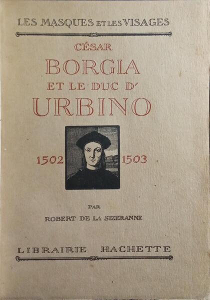 Clique nas imagens para aumentar. DE LA SIZERANNE. (Robert) CÉSAR BORGIA ET LE DUC D'URBINO, 1502-1503.Septième Mille. Les Marques et les Visages. Livrairie Hachette. Paris. 1927. De 22x16,5 cm. Com 127, [i] págs. Encadernação com lombada e cantos em pele, com nervos, rótulos e ferros a ouro na lombada. Corte das folhas carminado à cabeça, fita marcadora em tira de cetim e preserva as capas de brochura. Ilustrado em extratexto com gravuras a preto e branco, sobre papel couché. Exemplar com etiqueta do encadernador na folha de guarda e assinatura de posse coeva na folha de anterrosto.