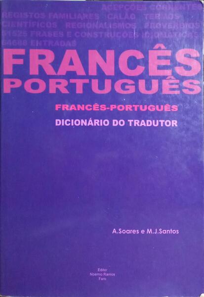 Clique nas imagens para aumentar. SOARES. (A.) e M. J. Santos. FRANCÊS-PORTUGUÊS: DICIONÁRIO DO TRADUTOR.Primeira edição. Editor: Noémia Ramos. Faro. 2003. De 23x17 cm. Com 826 págs. Brochado. Exemplar com etiqueta da Sodilivros e da Dinalivro na folha de guarda. Texto disposto em duas colunas separados por filetes simples. Contém lista de abreviaturas e nota dos autores nas folhas preliminares. Referência: 2510RS185