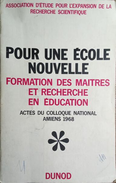 Formation des Maitres et Recherche en Éducation. Actes du Colloque d’Amiens. Association d’Étude pour l’Expansion de la Recherche Scientifique. Dumod. Paris. 1969.