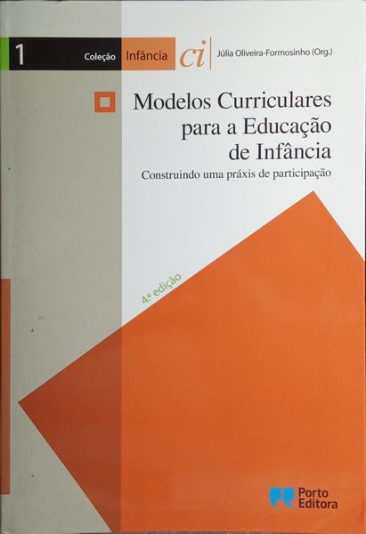 Clique nas imagens para aumentar. OLIVEIRA FORMOSINHO. (Júlia) e outros. MODELOS CURRICULARES PARA A EDUCAÇÃO DE INFÂNCIA.Construindo uma práxis de participação. Coordenada por Júlia Oliveira-Formosinho. 4.ª Edição. Colecção Infância: Série - Educação de Infância, N.º 1. Porto Editora. Porto. 2013. De 25x17 cm. Com 160 págs. Encadernação do editor com as pastas flexíveis. Ilustrado no texto com diagramas. Obra tem os seguintes autores: Júlia Oliveira Formosinho, João Formosinho, Dalila Lino e Sérgio Niza. Referência: 2510RS244