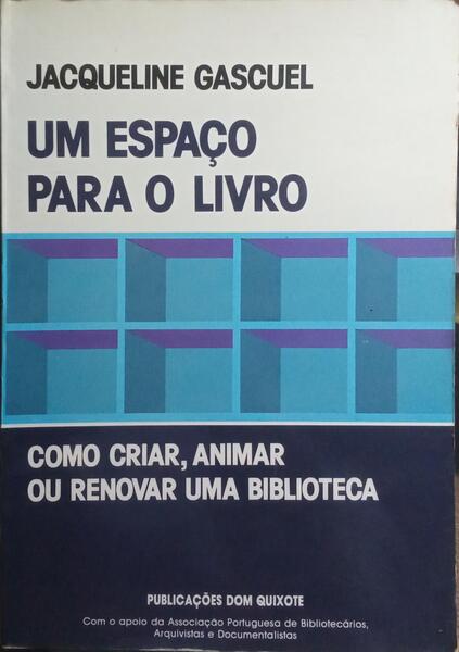 Clique nas imagens para aumentar. GASCUEL. (Jacqueline) UM ESPAÇO PARA O LIVRO.Como criar, animar ou renovar uma biblioteca. [Por]... Conservadora-Chefe da Biblioteca Central de Empréstimo de Yvelines. Ilustrações de André Depresles. 1.ª Edição. Publicações Dom Quixote. Lisboa. 1987. De 24x17 cm. Com 301 págs. Ilustrado no texto com gravuras, desenhos e fotografias a preto e branco de André Depresles. Exemplar com marcas de manuseamento nas capas, etiqueta da Livraria Arco Íris na folha de guarda, vestígios de oxidação e sublinhados a lápis. Referência: 2510RS503
