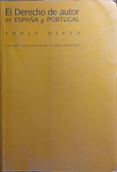 Clique nas imagens para aumentar. DIETZ. (Adolf) EL DERECHO DE AUTOR EN ESPAÑA Y PORTUGAL.Versión española de Ramón Eugenio López Sáez, revisada por el autor. Coleccion Analisis y Documentos, N.º 1. Ministerio de Cultura. Secretaría General Técnica. Madrid. 1993. De 23x16 cm. Com 308, [iii] págs. Brochado. Referência: 2510RS508