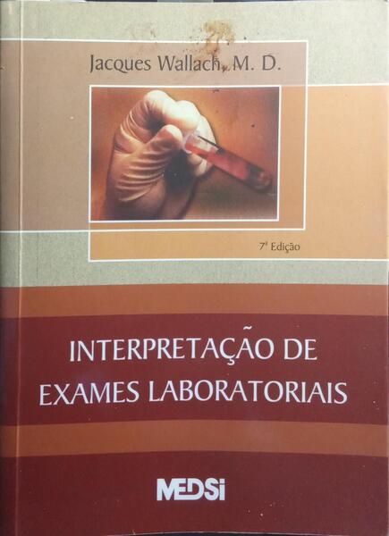 Clique nas imagens para aumentar. WALLACH. (Jacques) INTERPRETAÇÃO DE EXAMES LABORATORIAIS.[Por]..., M.D., Clinical Professor of Pathology, State University of New York, Health Science Center at Brooklyn; Attending Pathologist, Kings County Hospital Center Brooklyn, New York. Supervisão da Edição Brasileira Salim Kanaan, M.D., Médico Patologista Clínico, [...]. Sétima Edição. Medsi - Editora Médica e Científica. Rio de Janeiro. 2003. De 24x17,5 cm. Com xiv, [iii], 1068, [ii] págs. Brochado. Ilustrado com diagramas. Exemplar com sublinhados a marcador e a lápis. Referência: 2510RS553