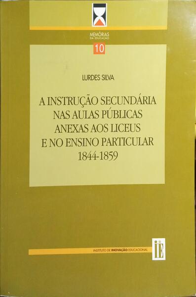 Clique nas imagens para aumentar. SILVA. (Lurdes) A INSTRUÇÃO SECUNDÁRIA NAS AULAS PÚBLICAS ANEXAS AOS LICEUS E NO ENSINO PARTICULAR, 1844-1859.Memórias da Educação, 10. Instituto de Inovação Educacional. Lisboa. 2002. De 23,5x16 cm. Com 225 págs. Brochado. Ilustrado no texto com mapas e gráficos. Exemplar com dedicatória da autora na folha de rosto. Referência: 2510RS737