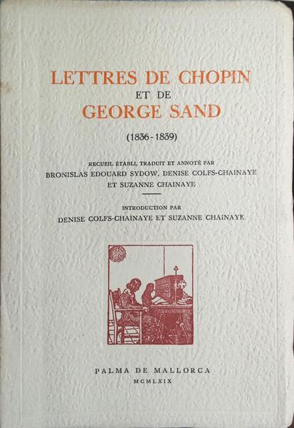 Clique nas imagens para aumentar. COLFS-CHAINAYE. (Denise) et Suzanne Chainaye. LETTRES DE CHOPIN ET DE GEORGE SAND, 1836-1839.Introduction par... Recuel établi, traduit et annoté par Bronislas Edouard Sydow,... et... Edicions la Cartoixa. Palma de Mallorca. MCMLXIX-1969. De 20x14 cm. Com 127, [viii] págs. Brochado. Ilustrado em extratexto com gravuras a preto e branco sobre papel couché. Exemplar com leves manchas. Referência: 2511DG139