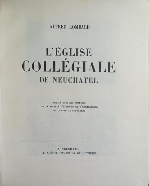 LOMBARD. (Alfred) L'ÉGLISE COLLÉGIALE DE NEUCHATEL.