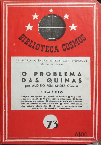 A origem das quinas. Difusão da cultura. As plantações no século XX. As plantações portuguesas. Bases modernas da cultura. Composição química e indústria de extracção dos alcalóides. Valor económico das actuais plantações. O porvir da cultura nas províncias ultramarinas portuguesas.