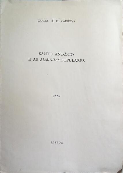 Clique nas imagens para aumentar. LOPES CARDOSO. (Carlos) SANTO ANTÓNIO E AS ALMINHAS POPULARES.Separata do Boletim Cultural da Assembleia Distrital de Lisboa. III Série, N.º 87 - 1.º Tomo, 1981. Comp. e imp. por Ramos, Afonso &; Moita. Lisboa. 1981. De 26,5x18,5 cm. Com 19, [xiii] págs. Brochado. Ilustrado no texto e em extratexto sobre papel couché com fac-símile e fotografias a preto e branco. Referência: 2511MA283
