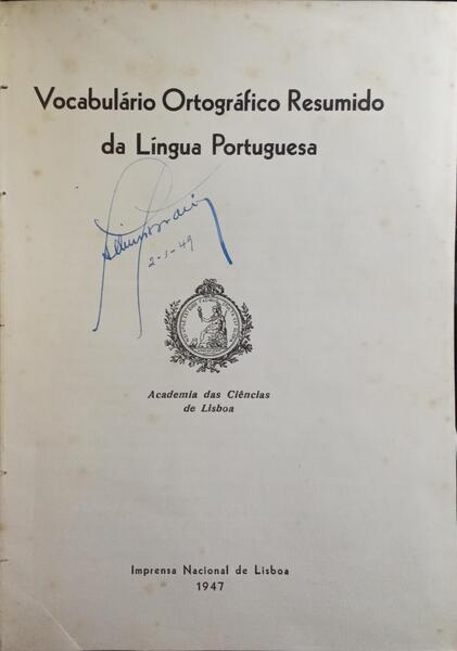 Clique nas imagens para aumentar. VOCABULÁRIO ORTOGRÁFICO RESUMIDO DA LÍNGUA PORTUGUESA.Academia das Ciências de Lisboa. Imprensa Nacional de Lisboa. 1947. De 24,5x18,5 cm. Com xli, [i], 475 págs. Encadernação com lombada e cantos em tela. Exemplar com assinatura de posse na folha de rosto. Referência: 2511MA291