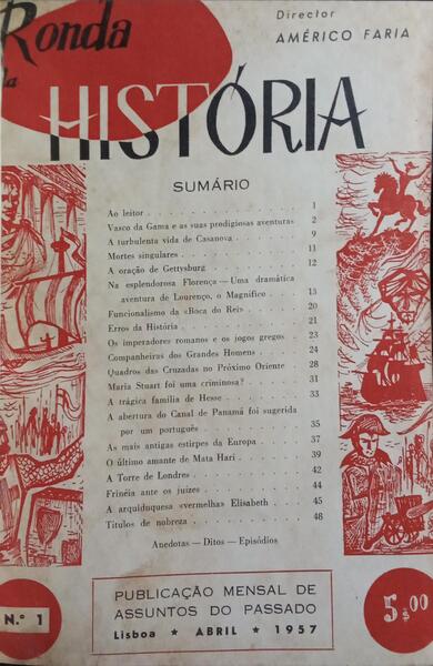 Clique nas imagens para aumentar. FARIA. (Américo) RONDA DA HISTÓRIA.Director... Publicação Mensal de Assuntos do Passado. Livraria Bertrand. Lisboa. 1957. De 21x15 cm. Com cerca 672 págs. Encadernação em percalina. Ilustrado. Obra em 14 números cada com 48 páginas: N.º 1 Abril, 2 -Abril, 3 -Junho, 4 -Julho, 5 -Agosto, 6 -Setembro, 7 -Outubro, 8 -Novembro, 9 -Dezembro de 1957; 10 -Janeiro, 11 -Fevereiro, 12 -Março, 13 -Abril, 14 -Maio de 1958, Ano II.