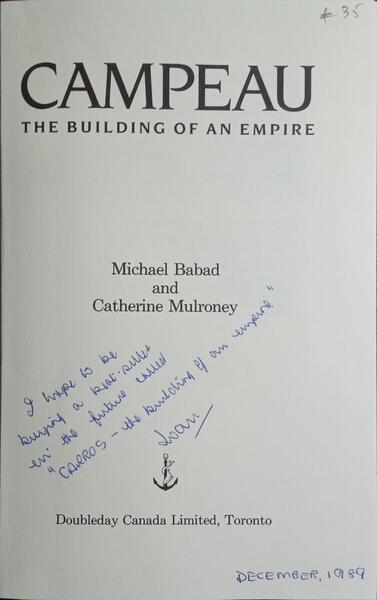 BABAD. (Michael) e Catherine Mulroney. CAMPEAU, THE BUILDING OF AN EMPIRE.