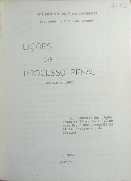 MARQUES DA SILVA. (Germano) LIÇÕES DE PROCESSO PENAL. CÓDIGO DE 1987.
