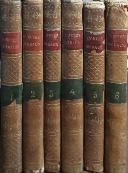 Clique nas imagens para aumentar. MARMONTEL. (Jean-François) CONTES MORAUX,Par M. Marmontel, de l’Académie Francoise. Nouvelle Édition, corrigée et augmentée. Tome Premier [au Tome Sixième]. A Maestricht, Chez J. P. Roux et Compagnie, Imprimeurs-Libraires, associés. 1793. 6 Volumes in 12.º de 17,5x11 cm. Com xv, [i], 239, [i em br]; [iv], 162, [ii]; [iv], 219, [i]; [iv], 271, [i]; [vi], 246, [iii]; [iv], 267, [i] págs. Encadernações inteiras de pele, com rótulos e ferros a ouro nas lombadas e borda das pastas, e a seco nas pastas em formato esquadria. Cortes das folhas mosqueados. Exemplar com danos à cabeça e pé das lombadas e com algumas manchas de humidade. Jean- François Marmontel (Bort-les-Orgues, França, 1723 - Normandia, 1799) foi poeta, dramaturgo, romancista e crítico francês e é mais conhecido pela sua obra autobiográfica Mémoires d"un père. Em 1745, encorajado por Voltaire, Marmontel estabeleceu-se em Paris. Compôs tragédias à maneira de Voltaire e libretos de óperas para os compositores Jean-Philippe Rameau, André-Ernest-Modeste Grétry, Niccolò Piccinni, e Luigi Cherubini. Os seus Contes moraux (1761; "Histórias Morais") são mais originais. Publicou-os pela primeira vez separadamente no Mercure de France, do qual foi editor entre 1758 e 1760. Sentimentais, edificantes e superficialmente elegantes em conteúdo e estilo, estes contos foram amplamente apreciados e imitados. A publicação de dois romances filosóficos, Bélisaire (1767) e Les Incas (1777), melhorou consideravelmente a sua reputação. O primeiro foi condenado pela Sorbonne por causa do seu apelo à tolerância religiosa e o segundo denunciava os malefícios do fanatismo.