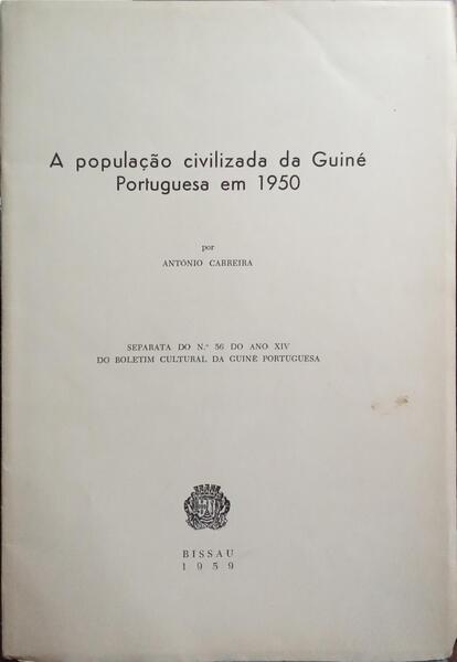 CARREIRA. (António) A POPULAÇÃO CIVILIZADA DA GUINÉ PORTUGUESA EM 1950.