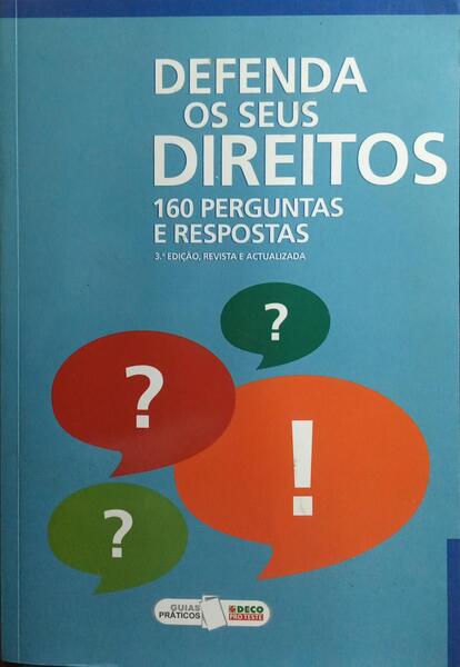 Clique nas imagens para aumentar. LINO. (António) DEFENDA OS SEUS DIREITOS. 160 PERGUNTAS E RESPOSTAS.Pesquisa e apoio técnico:... responsável pelo Serviço de Informação da Deco Proteste. 3.ª Edição, revista e actualizada. Guias Práticos. Deco Proteste, Editores. Lisboa. 2007. De 23,5x16,5 cm. Com 164, [ii] págs. Brochado. Referência: 2511RS452