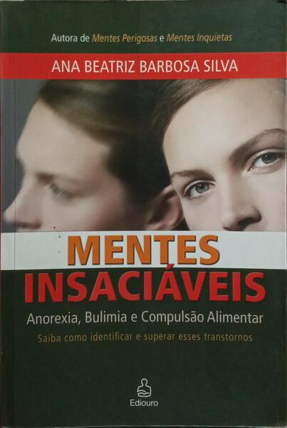 Clique nas imagens para aumentar. BARBOSA SILVA. (Ana Beatriz) MENTES INSACIÁVEIS.Anorexia, bulimia e compulsão alimentar: Conheça o universo das pessoas que sofrem desses transtornos. 2.ª Reimpressão. Ediouro. Rio de Janeiro. 2005. De 23x16 cm. Com 272, [iv] págs. Brochado. Ilustrado em extratexto a cores e sobre papel couché. Exemplar com leves picos de humidade. Referência: 2511RS485