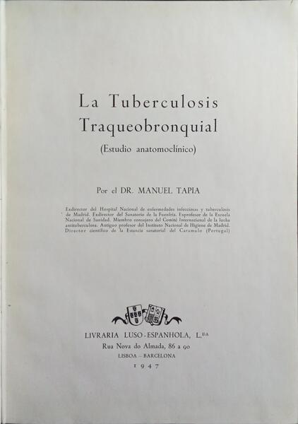 Estudio anatomoclínico. Por el Dr... Exdirecor del Hospital Nacional de enfermedades infecciosas y tuberculosis de Madrid, [...]. Livraria Luso-Espanhola. Lisboa. Barcelona. 1947.