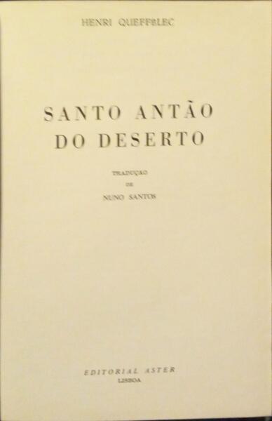 Clique nas imagens para aumentar. QUEFFÉLEC. (Henri) SANTO ANTÃO DO DESERTO.Tradução de Nuno Santos. Colecção Homens de Deus. Editorial Aster. Lisboa. 1961. De 23x16 cm. Com 176, [iii] págs. Encadernação com lombada em pele, com nervos e ferros a ouro. Exemplar com leves manchas de humidade nas páginas preliminares. Referência: 2511RS642