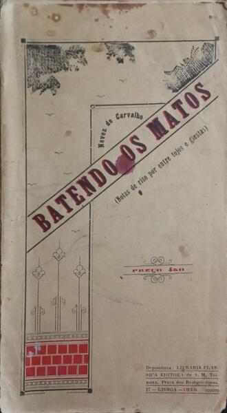 Clique nas imagens para aumentar. SEQUEIRA DE CARVALHO. (Joaquim Neves) BATENDO OS MATOS.Notas de riso por entre tojos e giestas. Depositária: Livraria Clássica Editora [Comp. e Imp. na Tip. Benavente]. Lisboa. . 1915. De 21x12 cm. Com 162, [vi] págs. Brochado. Ilustrado em extratexto, e face da folha de rosto, com uma fotografia do autor a preto e branco, sobre papel couché. Exemplar com dedicatória do autor na folha de anterrosto, alguns picos de humidade e com a capa anterior solta. Referência: 2511RS696
