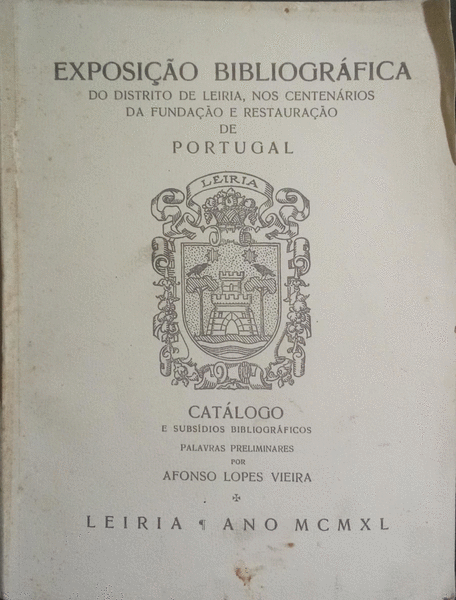 Clique nas imagens para aumentar. EXPOSIÇÃO BIBLIOGRÁFICA DO DISTRITO DE LEIRIA.Nos centenários da Fundação e Restauração de Portugal. Catálogo e subsídios bibliográficos. Palavras preliminares pelo director da Biblioteca erudita Afonso Lopes Vieira. Leiria. Ano MCMXL (1940). De 22,5x17 cm. Com xxxiii, 227 págs. Brochado. Ilustrado em extratexto com fac-símile a preto e branco sobre papel couché. Referência: 3005AR551