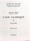 ADAM. (Antoine), Pierre Clarac e René Pomeau. LITTÉRATURE FRANÇAISE: L'AGE CLASSIQUE. [4 VOLS.]