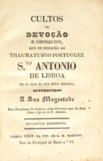 CULTOS DE DEVOÇÃO E OBSEQUIOS QUE SE DEDICÃO AO THAUMATURGO PORTUGUEZ S.TO ANTONIO DE LISBOA