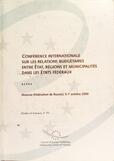 CONFÉRENCE INTERNATIONALE SUR LES RELATIONS BUDGÉTAIRES ENTRE ÉTAT, RÉGIONS ET MUNICIPALITÉS DANS LES ÉTATS FÉDÉRAUX.